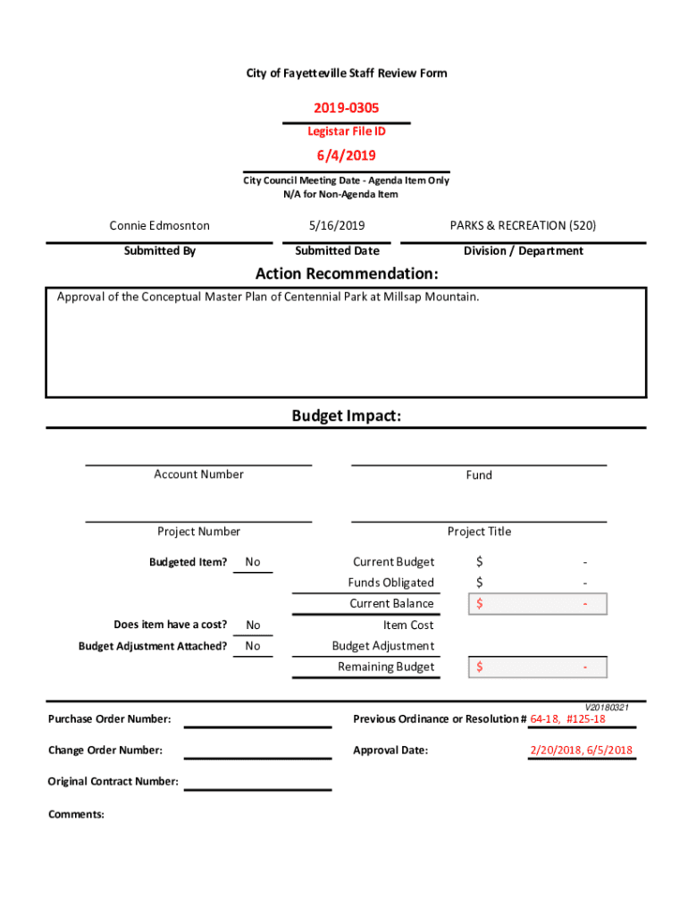 CityofFayettevilleStaffReviewForm20190305 LegistarFileID6/4/2019 CityCouncilMeetingDateAgendaItemOnly N/AforNonAgendaItemConnieEdmosnton5/16/2019PARKS&RECREATION(520)SubmittedBySubmittedDateDivision/DepartmentActionRecommendation: