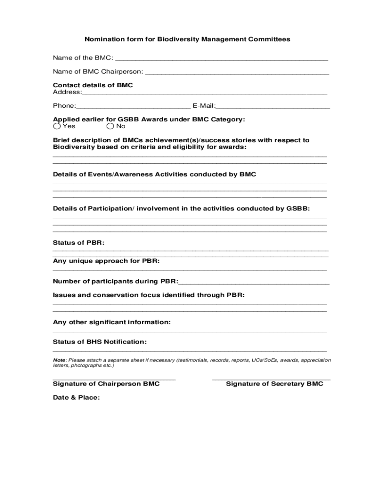 Get the free Nomination form for Biodiversity Management Committees