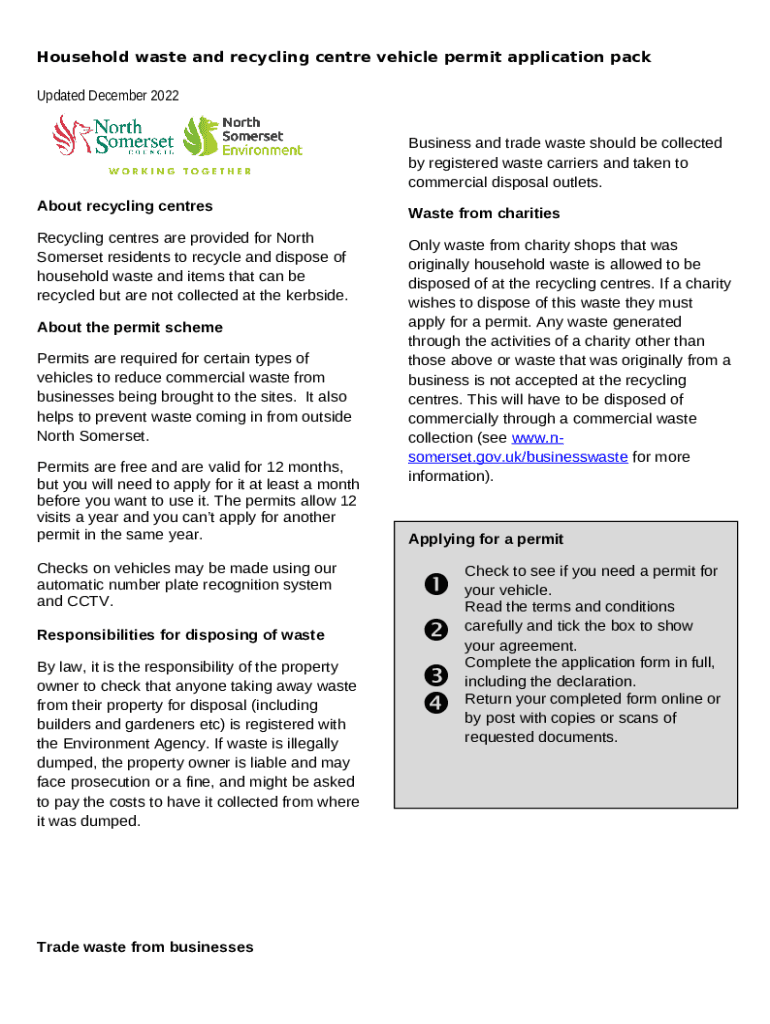 What is Household waste and recycling centre vehicle permit ... - n-somerset gov Form?