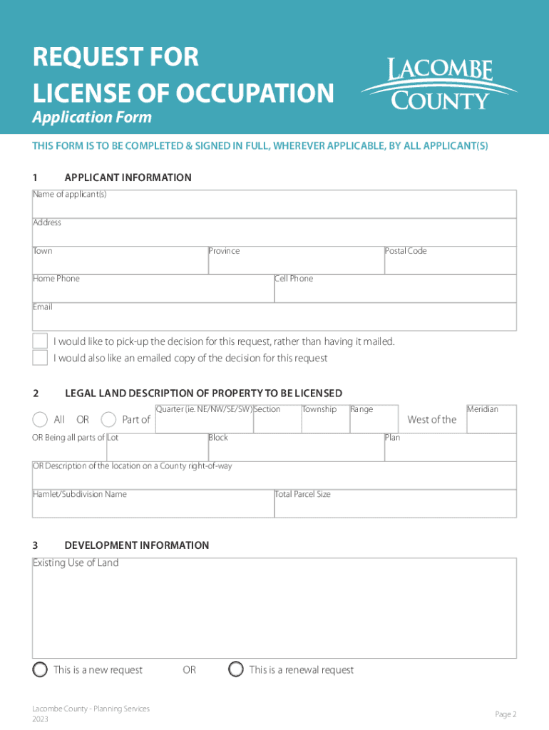 REQUEST FOR LICENSE OF OCCUPATION General Information someone wishes to operate on County owned land, they must first obtain a License of Occupation from the County. A License of Occupation is a legal