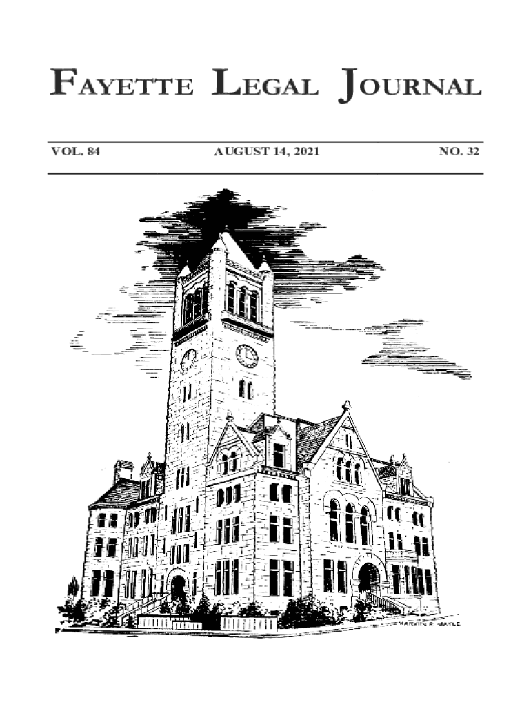 FAYETTE LEGAL JOURNAL VOL. 84AUGUST 14, 2021NO. 32IIFAYETTE LEGAL JOURNALFAYETTE LEGAL JOURNAL The FAYETTE LEGAL JOURNAL is published weekly by the Fayette County Bar Association, 45 East Main Street,