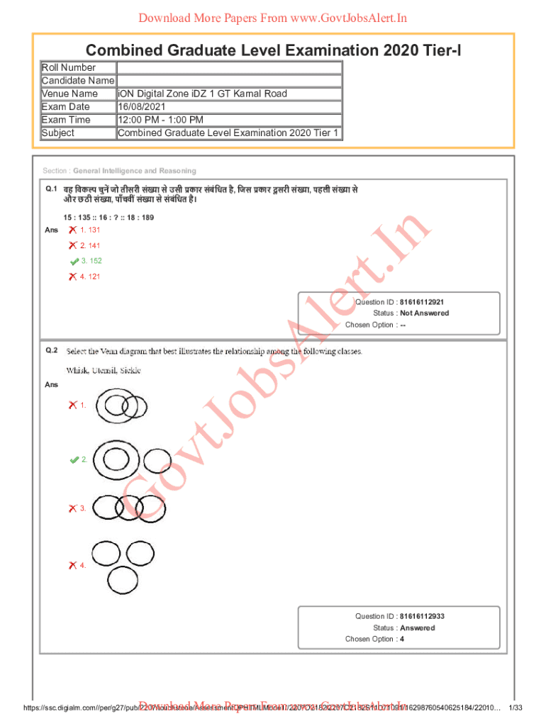 Download More Papers From www.GovtJobsAlert. Uncombined Graduate Level Examination 2020 Earl Roll Number Candidate Name Venue Name Exam Date Exam Time Subjection Digital Zone ID 1 GT Carnal Road 16/08/2021