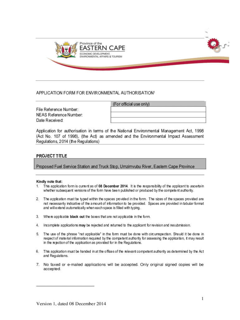 Get the free 107 of 1998), (the Act) as amended and the Environmental Impact Assessment