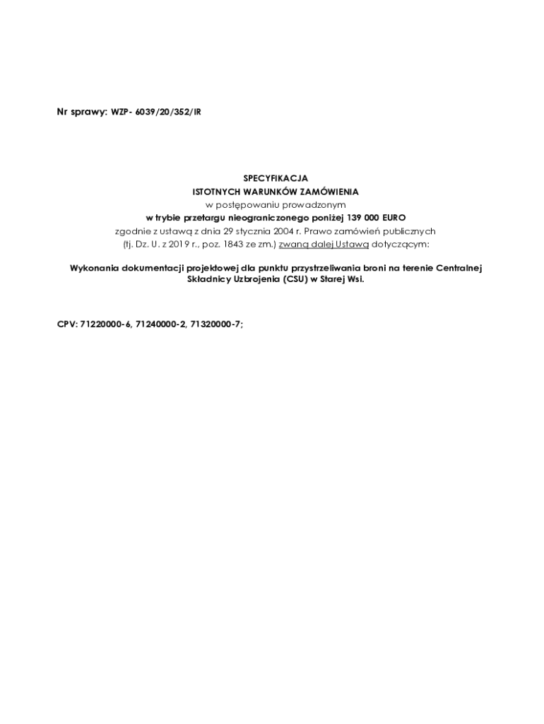 What is the purpose of nr sprawy wzp- 603920352ir?