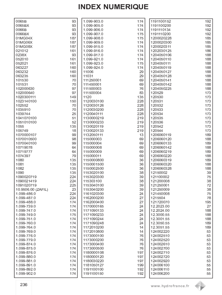 INDEX NUMEROUS 0065B 0065BX 0066B 0066BX 01MG04X 01MG06X 01MG08X 021012 0238X 052010 052021 063227 063232 063235 101530 101531 102000630 102000640 1020300111 1023140100 102552 1035910 1039744 1041070100