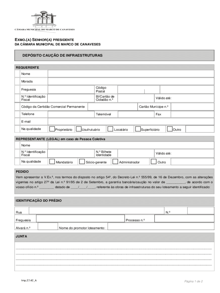 ELMO.(A) SENIOR(A) PRESIDENT EDA CLARA MUNICIPAL DE MARCO DE CANAVESESDEPSITO CAU ODE INFRAESTRUTURASREQUERENTE