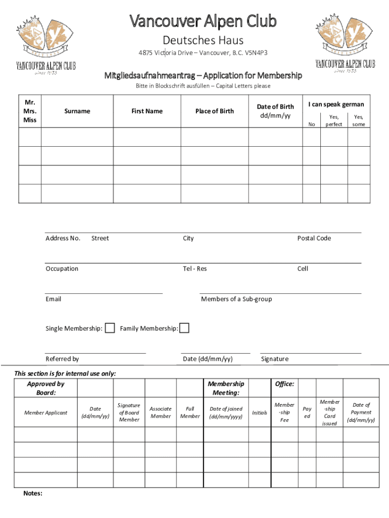 4875 Victoria Drive Vancouver, B.C. V5N4P3Mitgliedsaufnahmeantrag Application for Membership