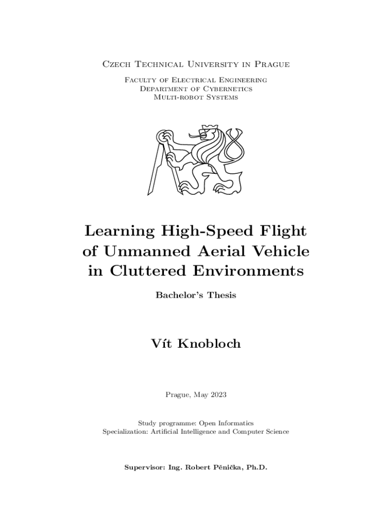 Czech Technical University in Prague Faculty of Electrical Engineering Department of Cybernetics Multi robot SystemsLearning High Speed Flight of Unmanned Aerial Vehicle in Cluttered Environments