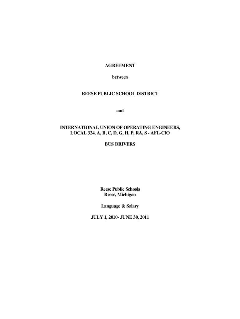 AGREEMENT betweenness PUBLIC SCHOOL DISTRICTandINTERNATIONAL UNION OF OPERATING ENGINEERS, LOCAL 324, A, B, C, D, G, H, P, RA, S AFL CIO BUS DRIVERS Reese Public Schools Reese, Michigan Language &