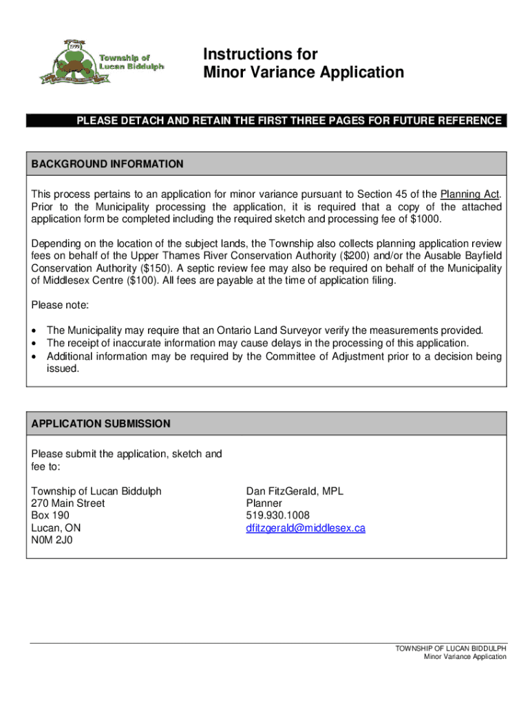 Instructions for Minor Variance Application PLEASE DETACH AND RETAIN THE FIRST THREE PAGES FOR FUTURE REFERENCEBACKGROUND INFORMATION This process pertains to an application for minor variance pursuant