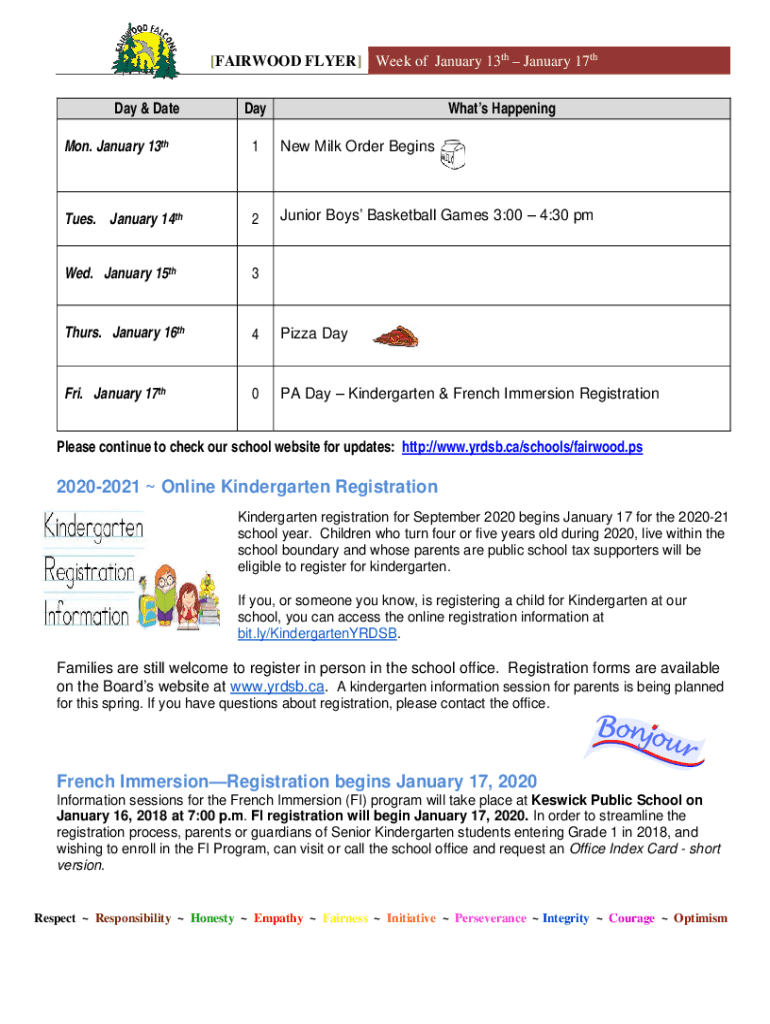 [FIREWOOD FLYER] Week of January 13th January 17th Day & DateDayWhats Happening Mon. January 13th1New Milk Order Begins Tues. January 14th2Junior Boys Basketball Games 3:00 4:30 pawed. January 15th3Thurs.