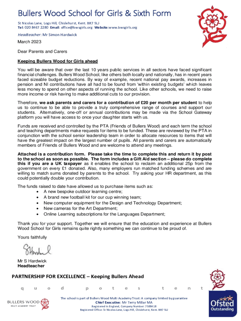 The form for reporting Bullers Wood Girls science must be completed with accurate information and submitted to the appropriate authorities.