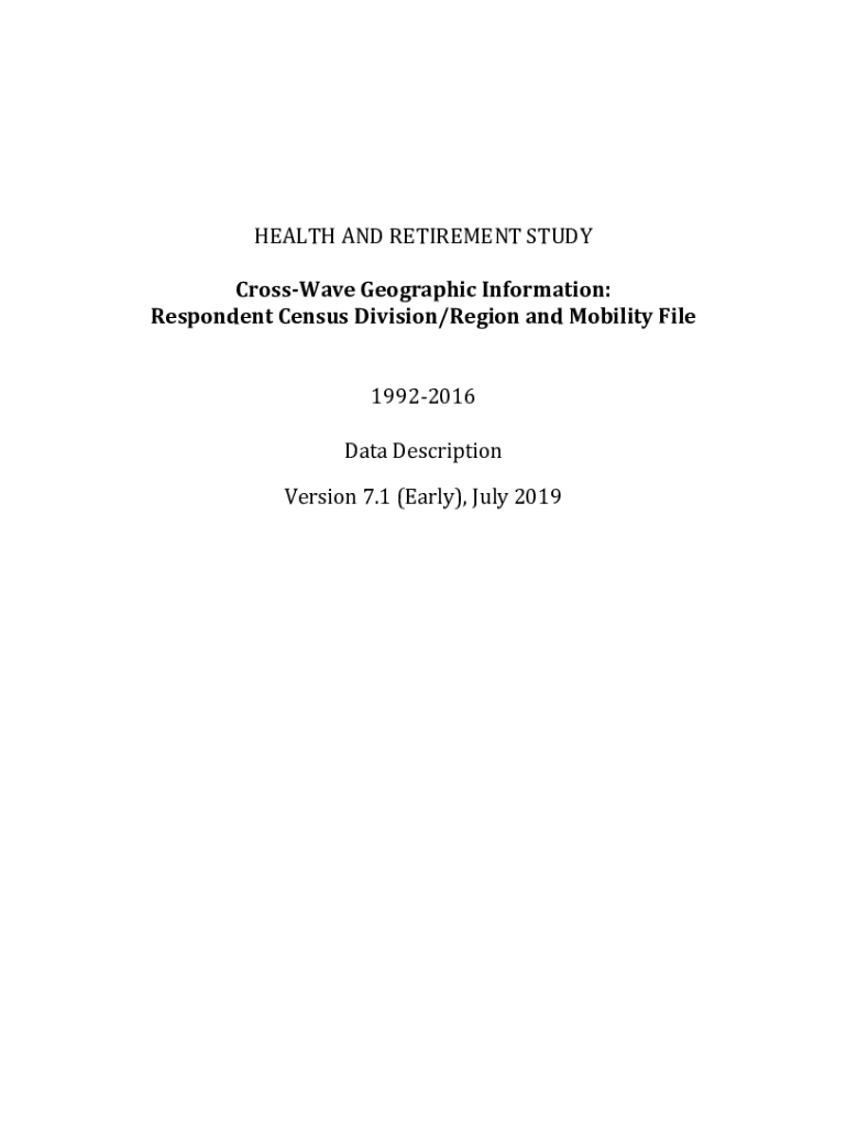HEALTH AND RETIREMENT STUDY Cross Wave Geographic Information: Respondent Census Division/Region and Mobility File 19922016 Data Description Version 7.1 (Early), July 2019**** EARLY RELEASE ****Table