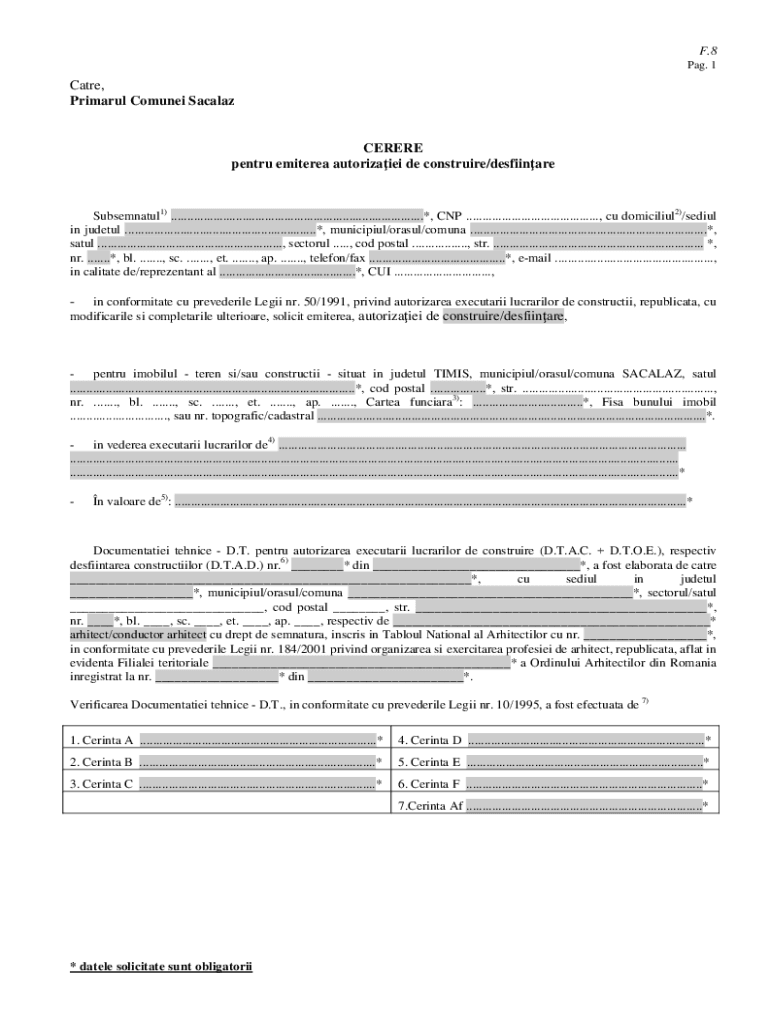 F.8 PAG. 1Catre, Primarily Commune Scalar SEVERE entry Eritrea autorizaiei de construe/desfiinareSubsemnatul1) ..............................................................................×, CNP
