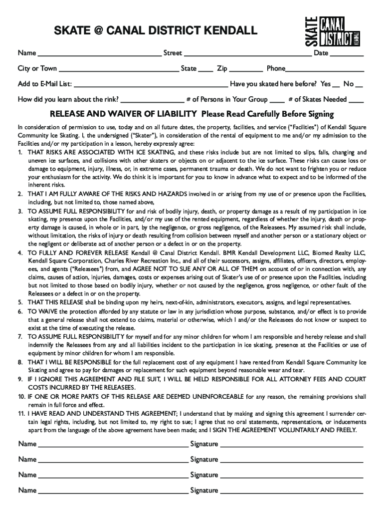 SKATE @ CANAL DISTRICT KENDALL Name ___ Street ___ Date ___ City or Town ___ State ___ Zip ___ Phone___ Add to Email List: ___ Have you skated here before? Yes __ No __ How did you learn about the