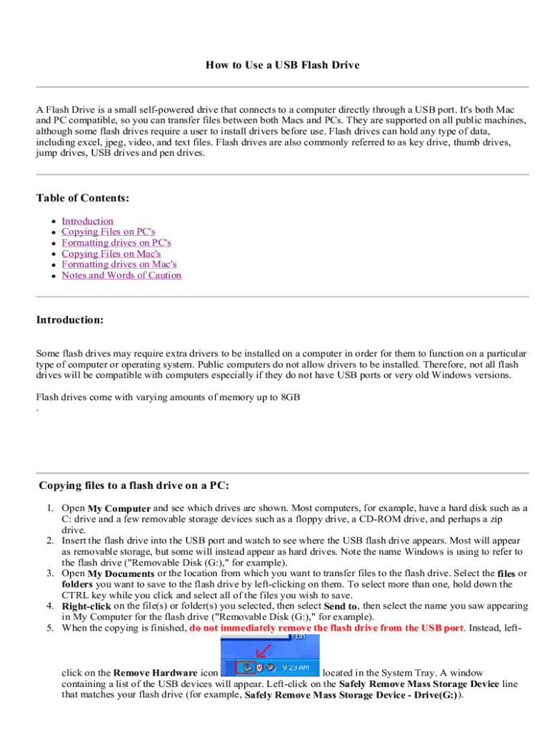 Get the free How to Use a USB Flash Drive Table of Contents: Introduction