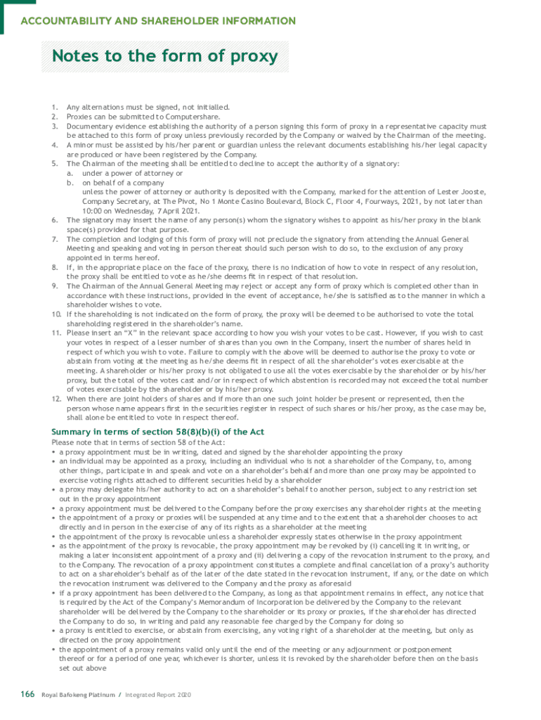 ACCOUNTABILITY AND SHAREHOLDER INFORMATIONNotes to the form of proxy 1. Any alternations must be signed, not initialed. 2. Proxies can be submitted to Computer share. 3. Documentary evidence establishing