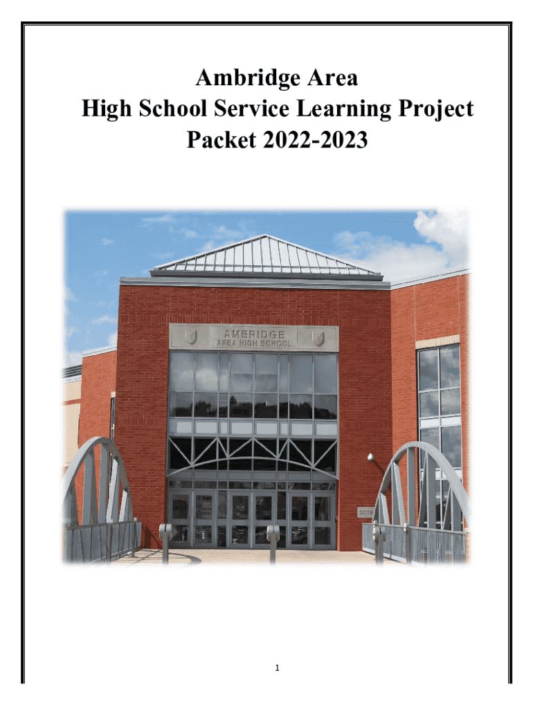 Cambridge Area High School Service Learning Project Packet 202220231SENIOR SERVICE LEARNING PROJECT 2022 2023 INFORMATION: ENCLOSED TABLE OF CONTENTS PAGE 3: WHAT IS SERVICE LEARNING? PAGE 4 5: SENIOR
