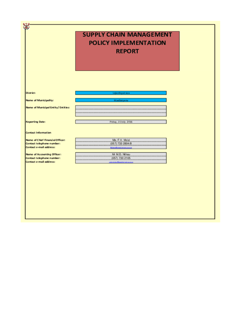 Get the free Supply Chain Management Policy implementation report