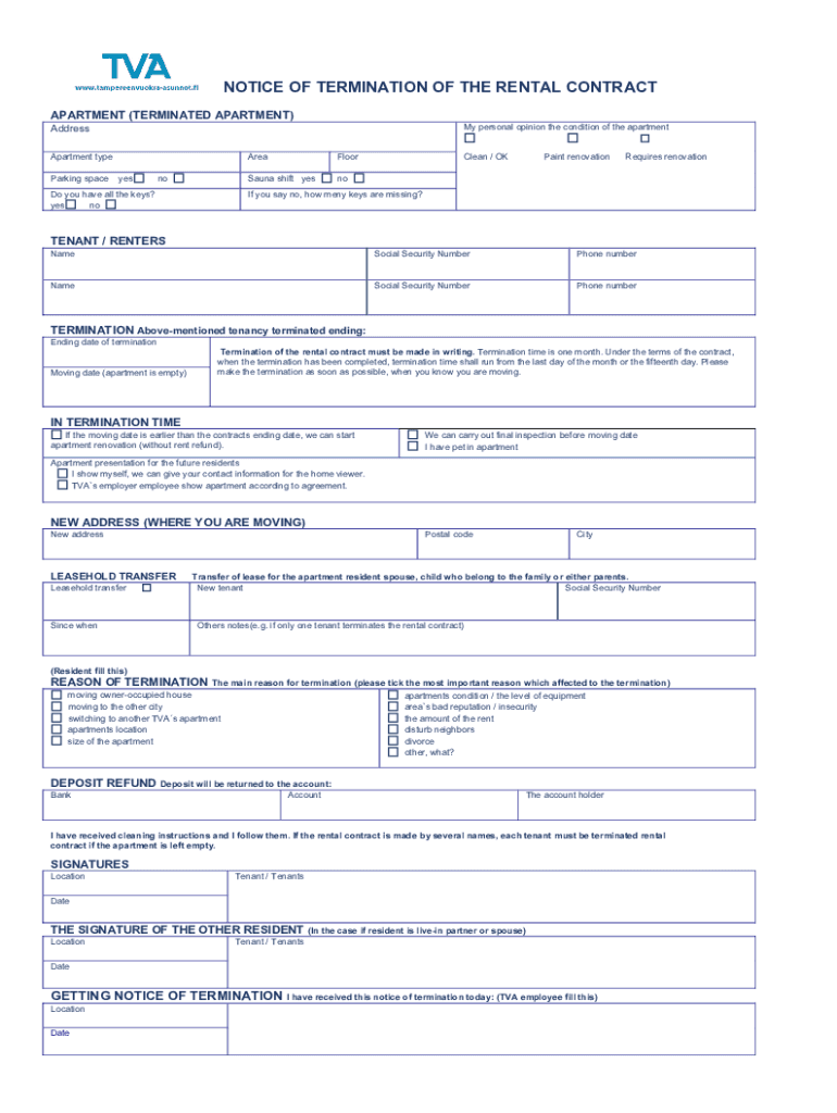 Get the free NOTICE OF TERMINATION OF THE RENTAL CONTRACT