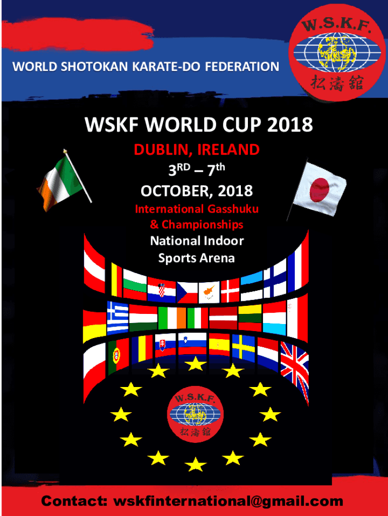 WORLD PHOTON KARATE DO FEDERATIONS WORLD CUP 2018 DUBLIN, IRELAND 3RD 7th OCTOBER 2018 International Gasshuku & ChampionshipsNational Indoor Sports Recontact: wskfinternational@gmail.comWORLD PHOTON