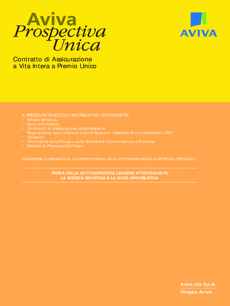 Contralto di Assicurazione a Vita Inter a Premix Uncoil PRESENT FASCICLE INFORMATIVE CONTINENT: Schema Synthetic; Not Informative; Conditions di Assicurazione compressive DI: Regalement Della Gemstone