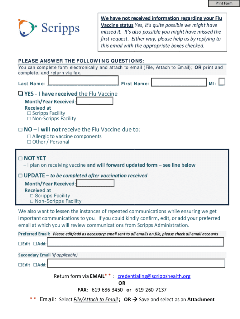 Print Form We havenotreeceivedinfformationregardinggyourFlu Vacciinestatus Yes, it\'squuitepossiblewemigh ht have missed. It\'saalsopossiblleyoumighthavemissedthe firstrrequest. Eiitherway, pleasehellpusbyrep