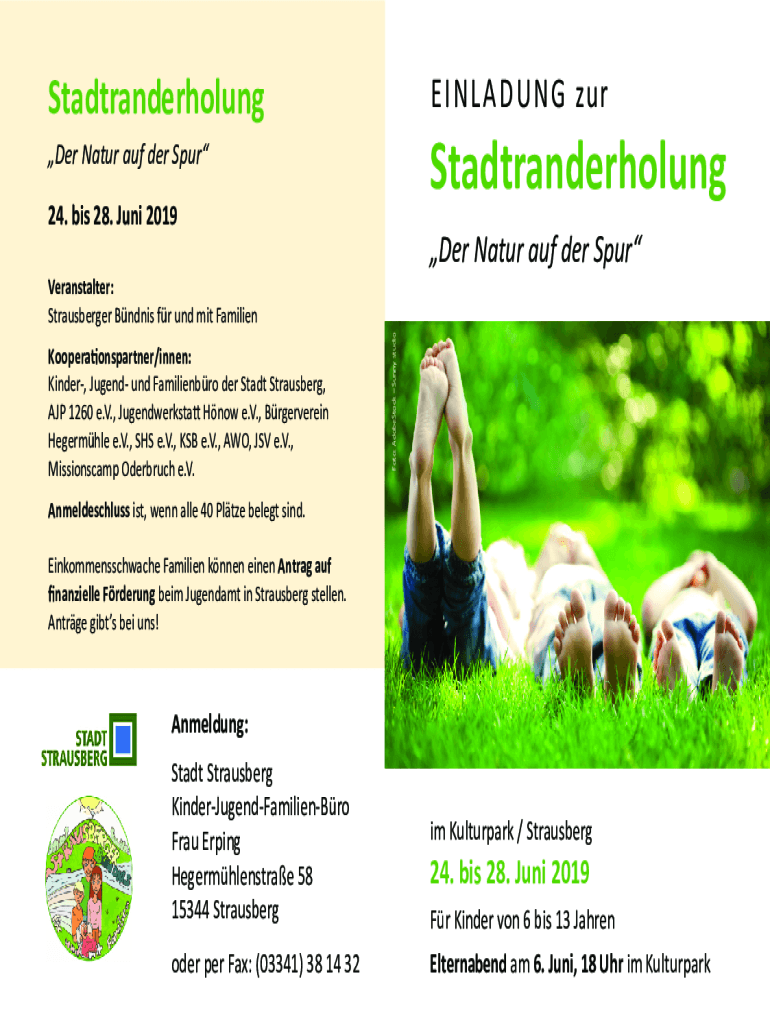 StadtranderholungE i n l a d u n g zurStadtranderholungDer Nature AUF her Spur