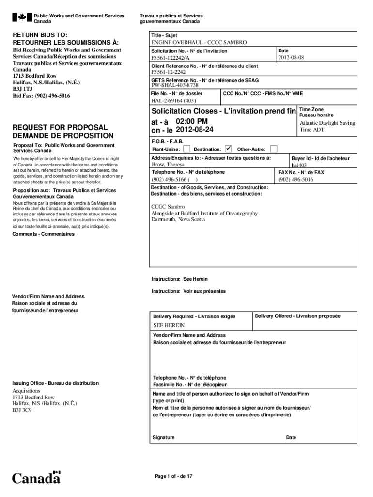 Public Works and Government Services CanadaTravaux public set Services gouvernementaux Canada 1 1RETURN BIDS TO: RETURNER LES COMMISSIONS :Title Outbid Receiving Public Works and Government Services