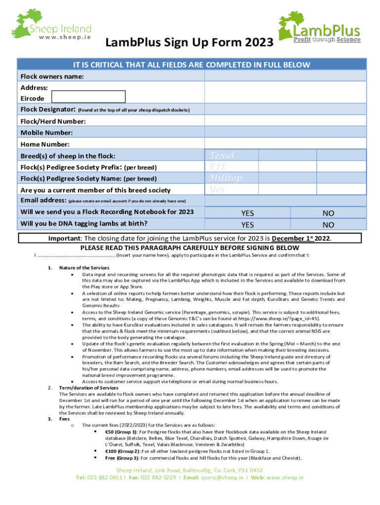 Fill out your sheep ireland lambplus participation online with pdfFiller!