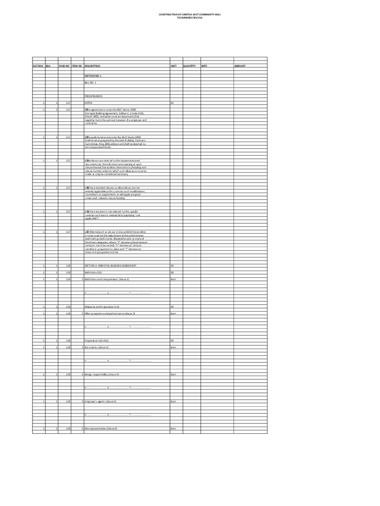CONSTRUCTION OF CHIN TSA EAST COMMUNITY HALL TECH/MIG32/2015/16SECTIONBILLPAGE NO ITEM NO DESCRIPTIONUNITSECTION NO. 1 BILL NO. 1PRELIMINARIES 11117NOTES11117i)The agreement is to be the JCC Series