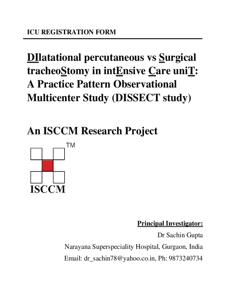 ICU REGISTRATION FORMDIlatational percutaneous vs Surgical