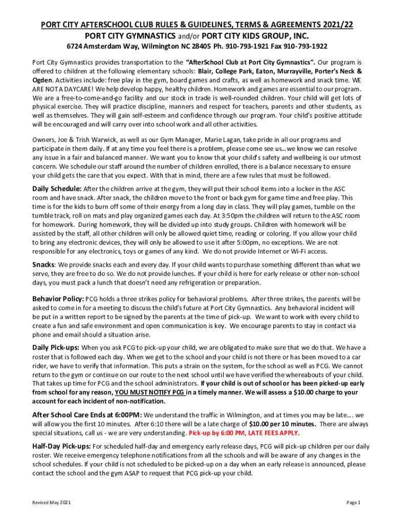 PORT CITY INTERSCHOOL CLUB RULES & GUIDELINES, TERMS & AGREEMENTS 2021/22