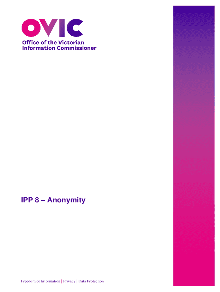 IPP 8 AnonymityFreedom of Information | Privacy | Data Protection IPP 8 Anonymity On this page Transactions .........................................................................................................................................