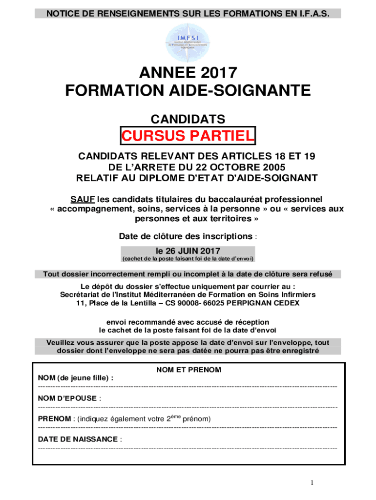 Obtenir le gratuit NOTICE DE RENSEIGNEMENTS SUR LES FORMATIONS EN I