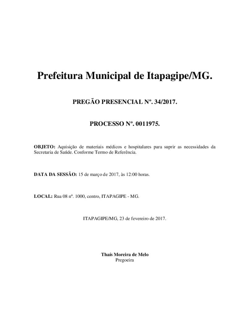 PRESO PRESENCE N. 34/2017.PROCESS N. 0011975.OBJECT: Aquino de materials medicos e hospital ares para super as necessitates the