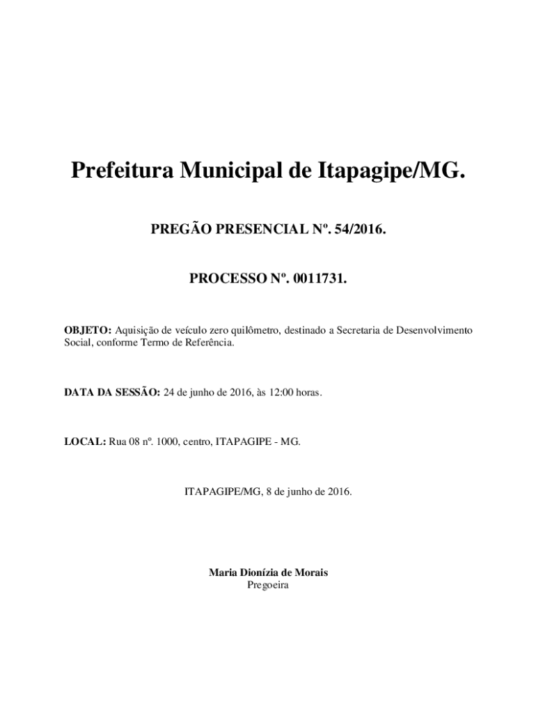 Obtenha o gratuito OBJETO: Aquisio de veculo zero quilmetro, destinado a Secretaria de Desenvolvi...