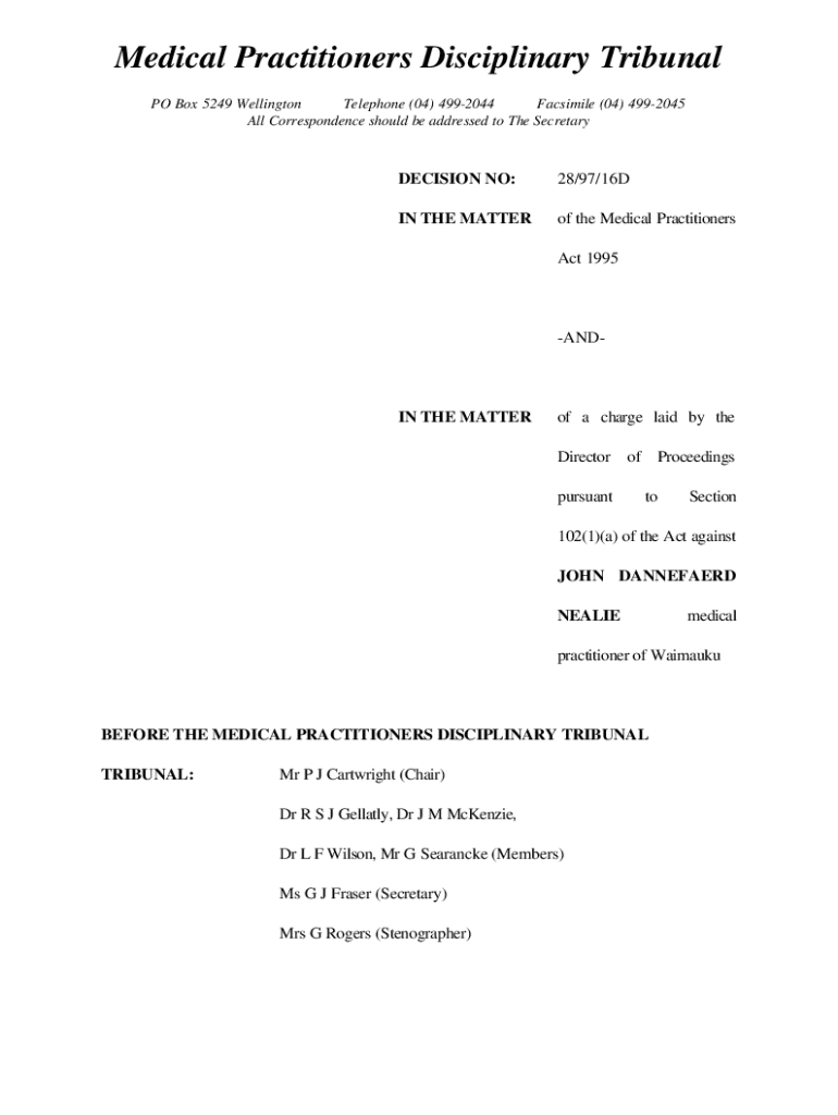 Get the free 9716dfindingslaw - Medical Practitioners Disciplinary Tribunal