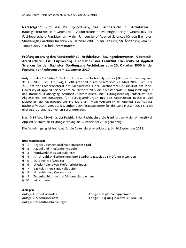 Engage 2 sum Prsidiumsbeschluss RSO 720 am 05.02.2018Nachfolgend word die Prfungsordnung DES Fachbereichs 1: Architecture