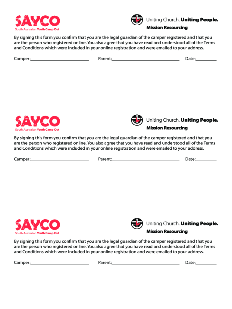 By signing this form you confirm that you are the legal guardian of the camper registered and that you are the person who registered online. You also agree that you have read and understood all the