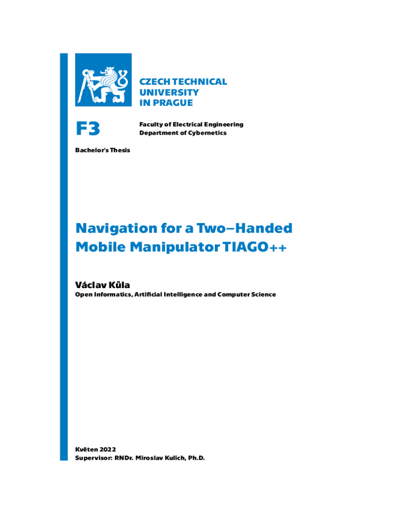 Get the free Navigation for a Two--Handed Mobile Manipulator TIAGO++. Bachelor's Thesis - dspace ...