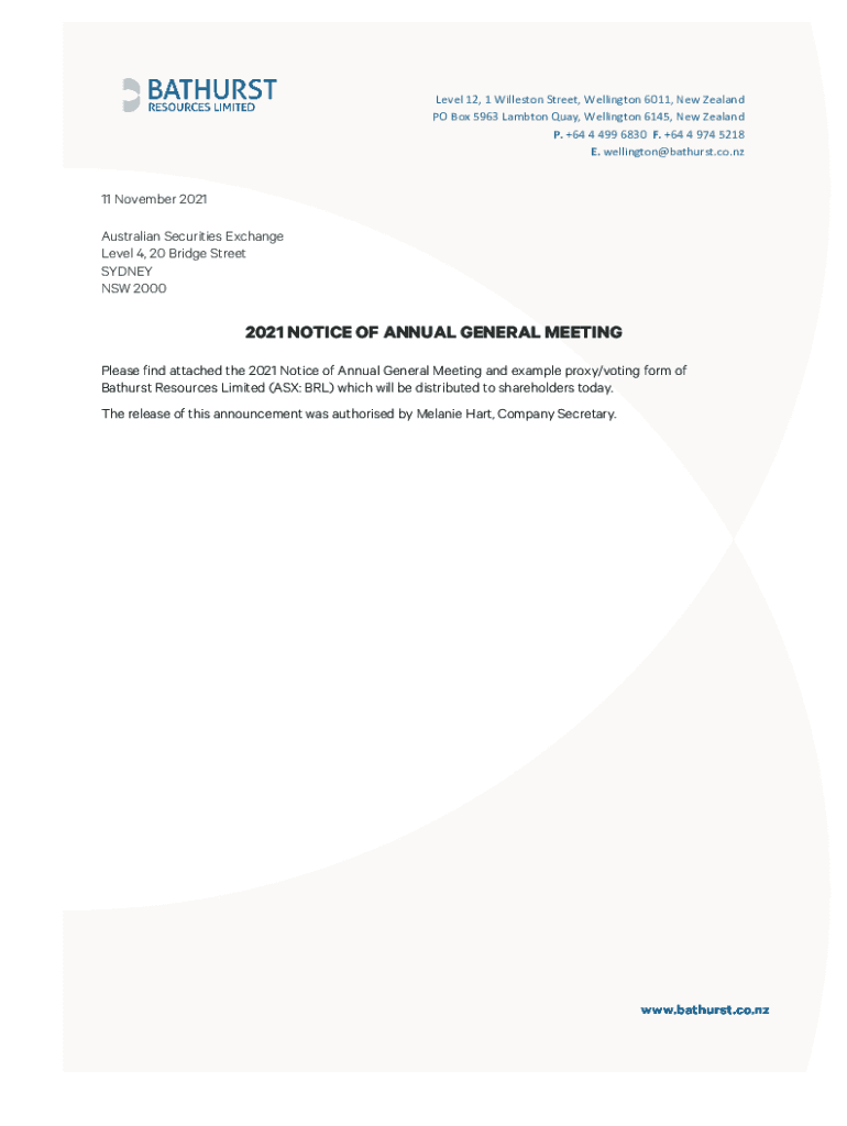 Level 12, 1 Williston Street, Wellington 6011, New Zealand PO Box 5963 Lamb ton Quay, Wellington 6145, New Zealand P. +64 4 499 6830 F. +64 4 974 5218 E. wellington@bathurst.co.nz11 November 2021