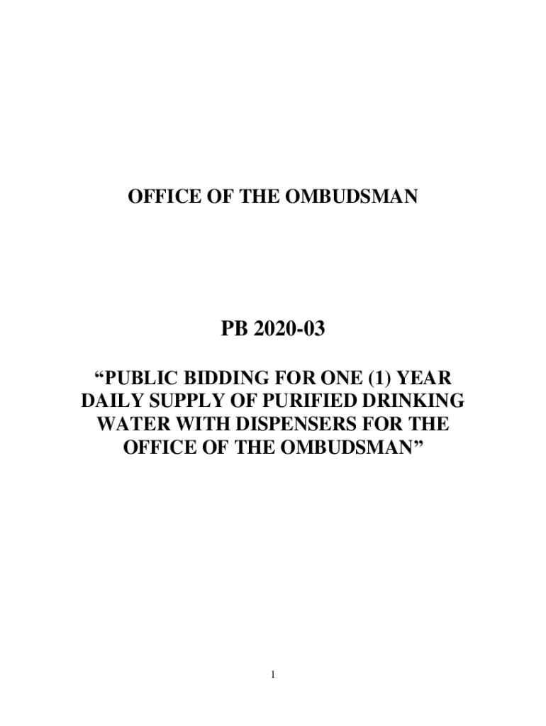 OFFICE OF THE OMBUDSMAN PB 202003 PUBLIC BIDDING FOR ONE (1) YEAR DAILY SUPPLY OF PURIFIED DRINKING WATER WITH DISPENSERS FOR THE OFFICE OF THE OMBUDSMAN1TABLE OF CONTENTS SECTION I. INVITATION TO