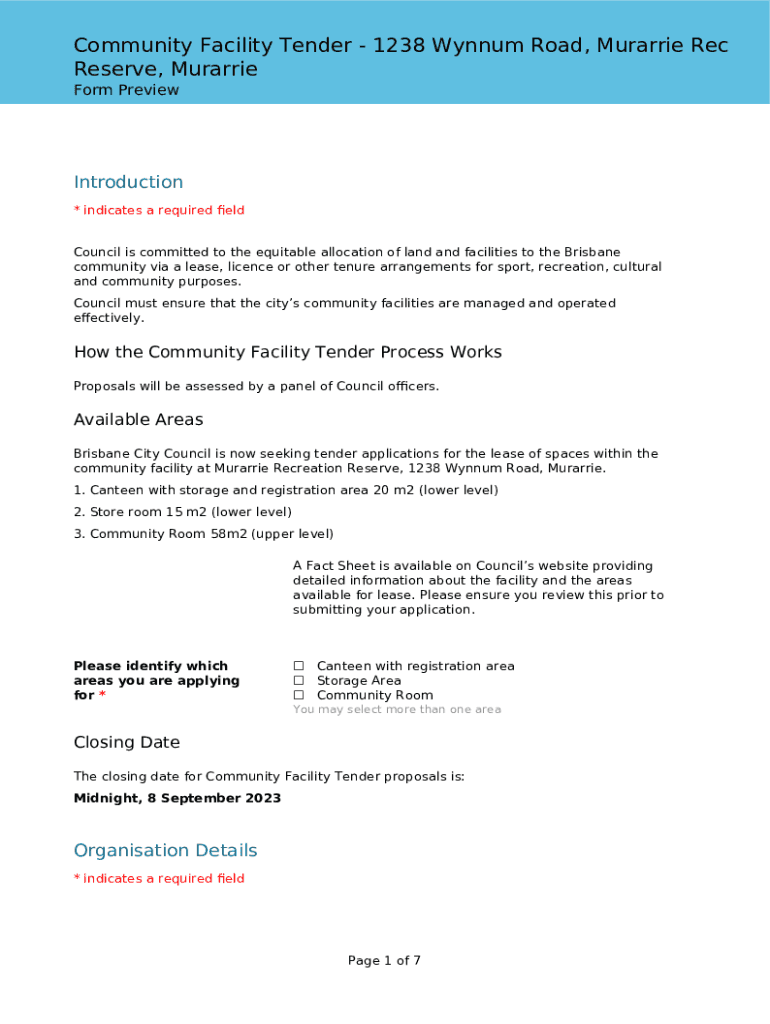 Community Facility Tender 1238 Wynnum Road, Married Rec Reserve, Married Form PreviewIntroduction * indicates a required ELD Council is committed to the equitable allocation of land and facilities