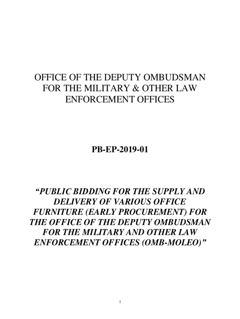 OFFICE OF THE DEPUTY OMBUDSMAN FOR THE MILITARY & OTHER LAW ENFORCEMENT OFFICESPBEP201901PUBLIC BIDDING FOR THE SUPPLY AND DELIVERY OF VARIOUS OFFICE FURNITURE (EARLY PROCUREMENT) FOR THE OFFICE OF