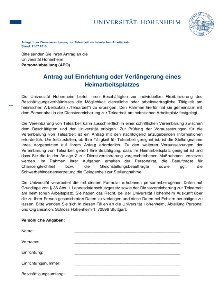 Engage 1 her Dienstvereinbarung our Telearbeit am famished Arbeitsplatz