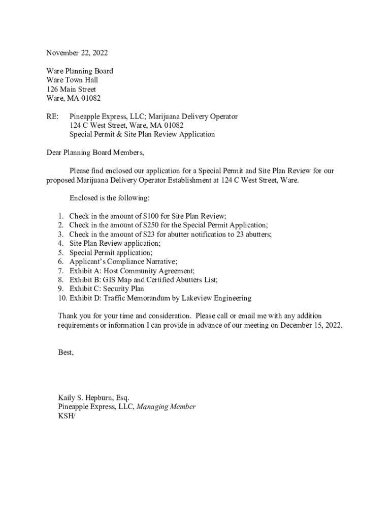 RE:Pineapple Express, LLC; Marijuana Delivery Operator