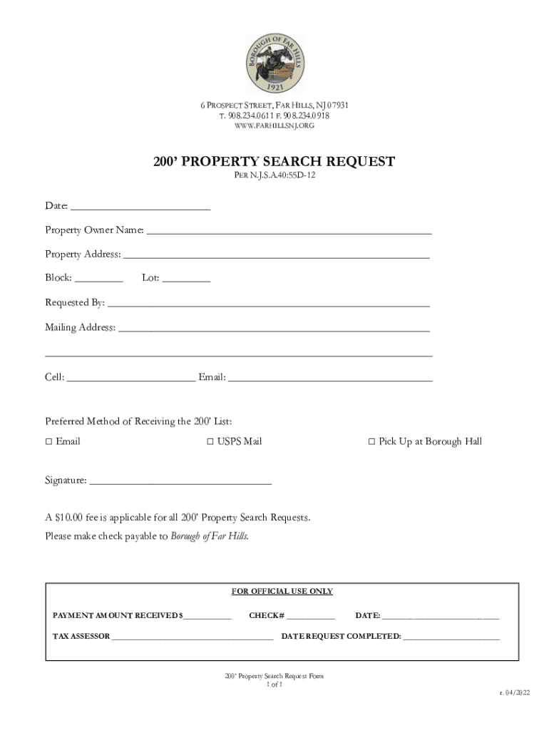 WWW.FARHILLSNJ.ORG200 PROPERTY SEARCH REQUEST