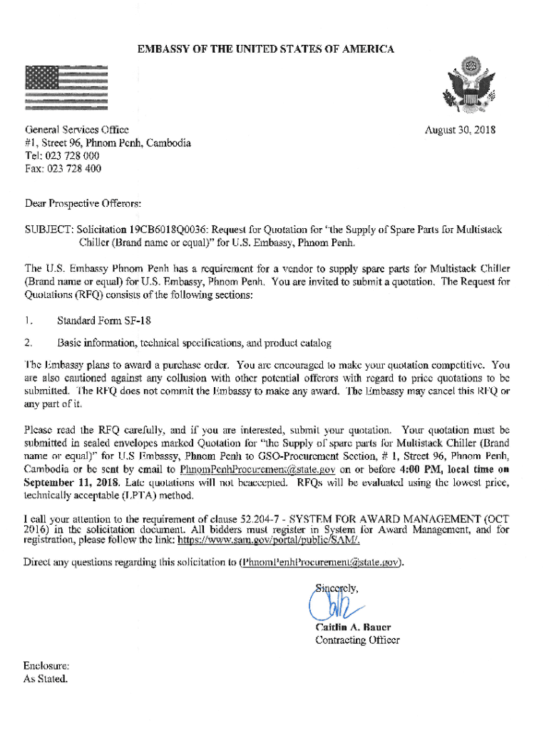 Suppliers or vendors who are providing spare parts are required to file rfq19cb6018q0036.