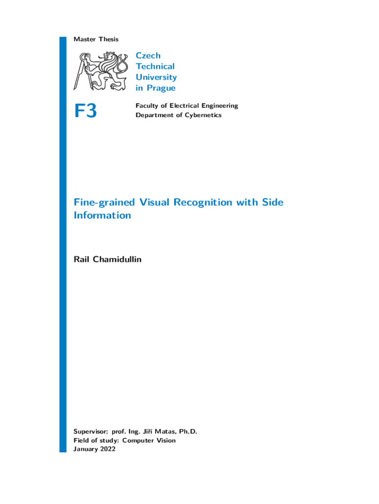Master Thesis Czech Technical University in PragueF3Faculty of Electrical Engineering Department of CyberneticsFinegrained Visual Recognition with Side Informational ChamidullinSupervisor: prof. ING.